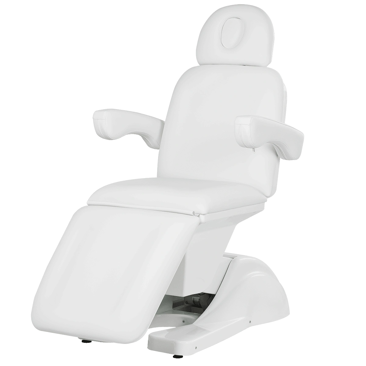 Косметологическое кресло МД-145 сочетает в себе стиль, европейский дизайн, удобство и надёжность, это кресло для проведения полного комплекса косметологических и массажных процедур. В таком кресле каждый клиент сможет насладиться процедурой в комфортных условиях. Регулировка спинки, высоты, подъёма ног и угла наклона кресла осуществляется мощным электроприводом с 4 моторами с помощью улучшенной версии пульта управления с 8 кнопками, что позволяет быстро и с комфортом для клиента менять положение мягких элементов. Имеется функция CPR – мгновенное приведение всех секций в исходное положение.