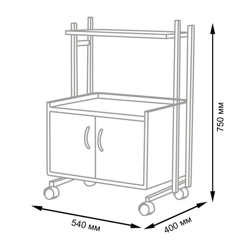 Комплектация: основа, полочка, шкафчик с дверками закрытого типа, колёса.