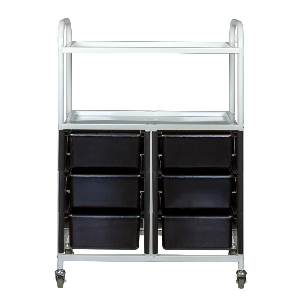 Комплектация: каркас на поворотных колесиках, 6 ящиков, 2 полки.