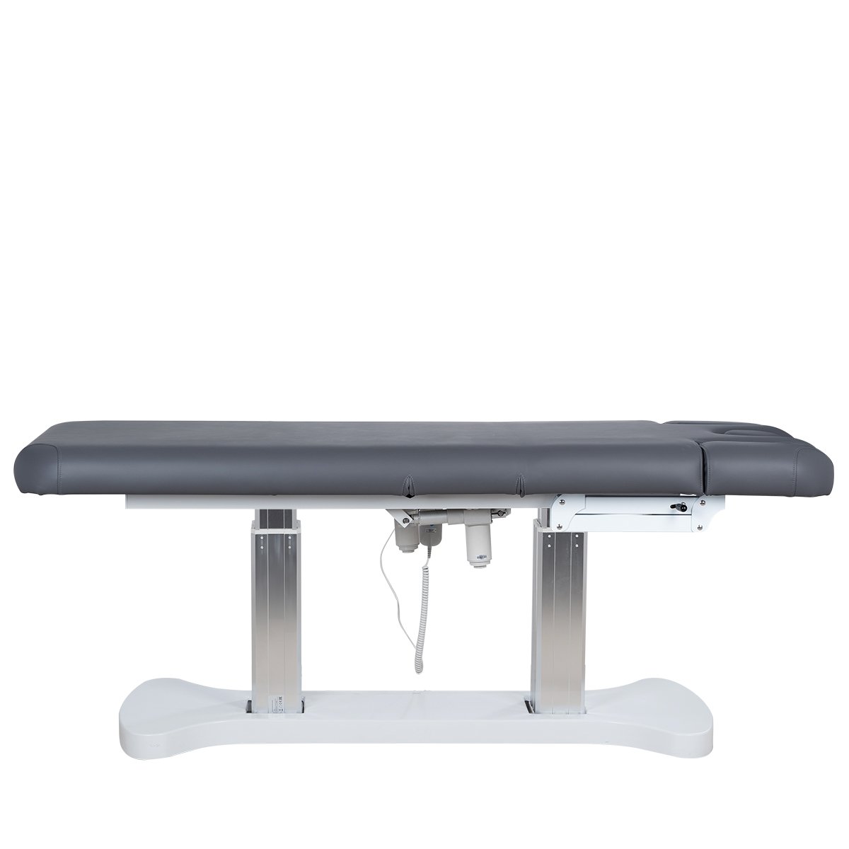 В спинке СПА-кушетки есть специальный вырез для лица, который при необходимости можно закрыть подушкой. Подлокотники регулируются по высоте и адаптируются под клиента — обеспечивая удобство в положении лёжа на животе. Благодаря единому ложу без разделения на секции, кушетка подходит абсолютно для всех процедур сразу в трёх направлениях: косметология, спа и массаж. Комплектуется ручным или ножным пультом — на выбор!