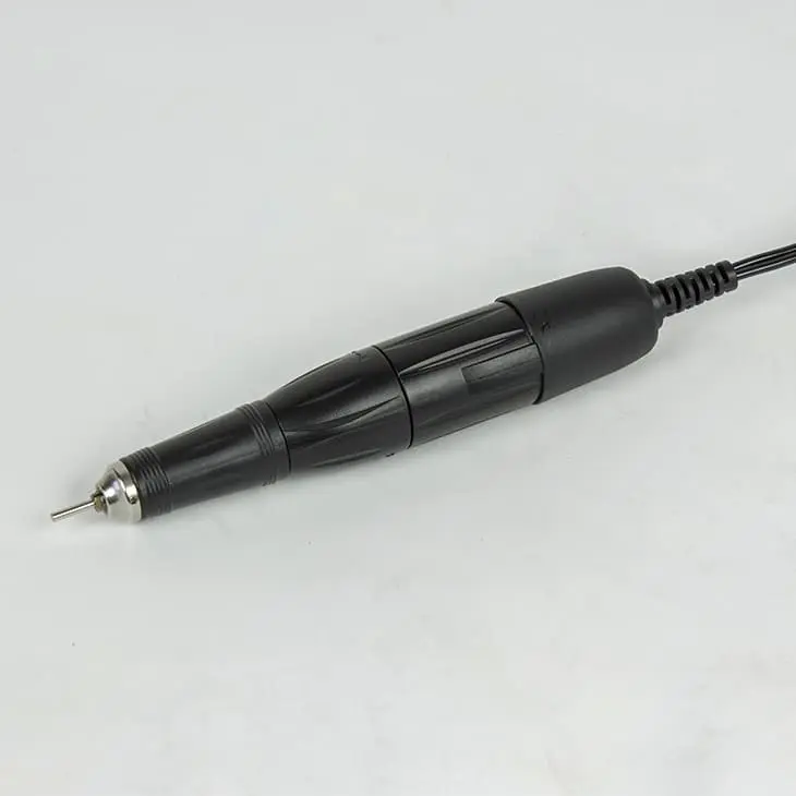 Устройство состоит из блока из питания, ручки с микромотором и подставки. Для ручки предусмотрена отдельная подставка. Ножная педаль предусмотрена для включения и выключения. Кнопкой реверса удобно менять направление вращения. Компактное оборудование можно сложить в стильную сумочку и взять с собой для выездной работы.