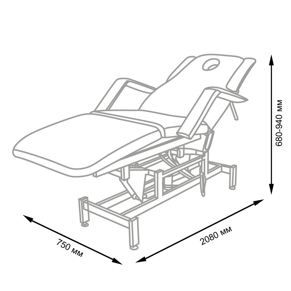 • Размеры (ВхШхД): 680 – 940х750х2080 мм