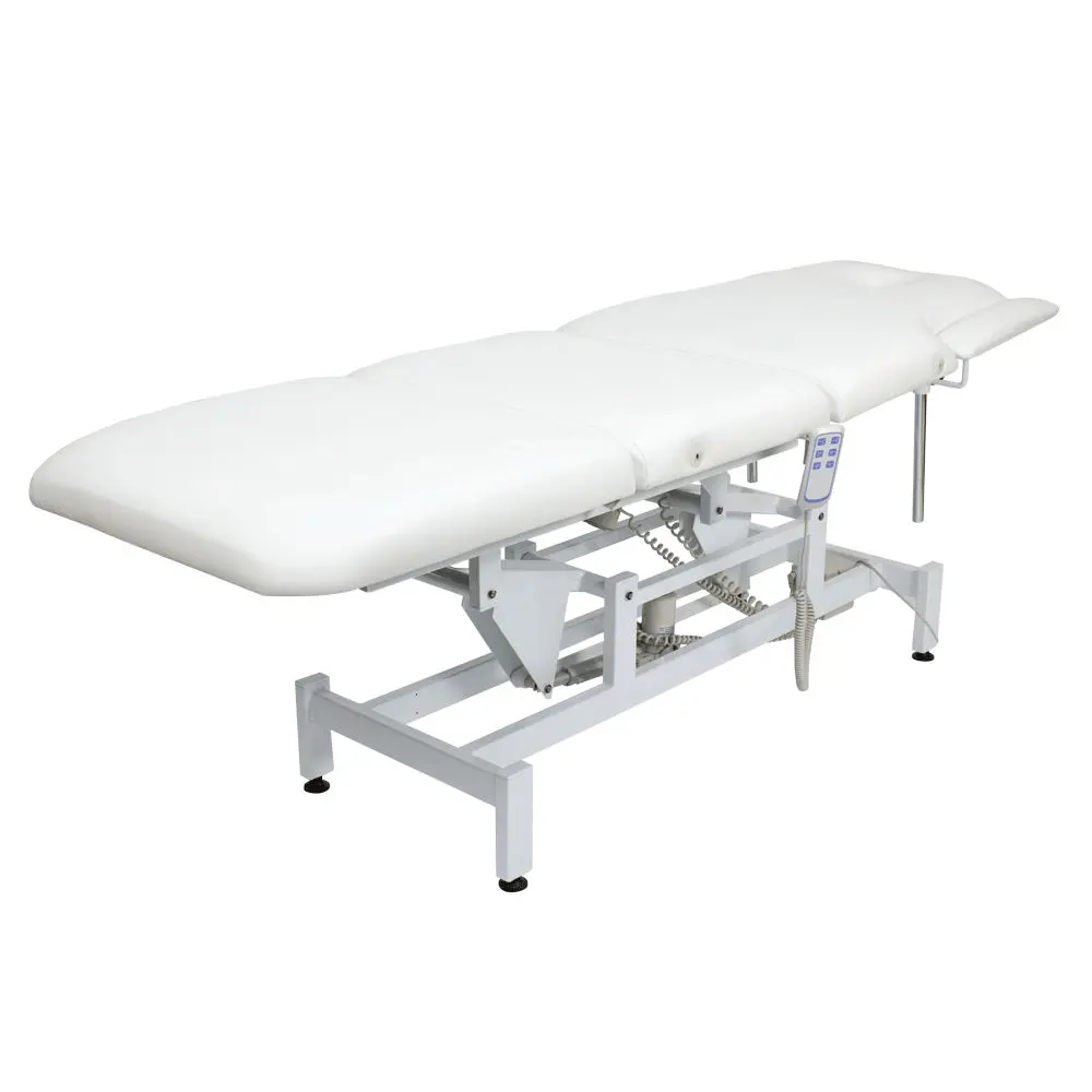 Кушетка массажная МД-849 (Элегия-3А) (электропривод, 3 мотора) – это профессиональное оборудование от компании МЭДИСОН. Она разработана для применения в массажном или косметологическом кабинете высокого уровня. Мягкая часть кушетки разделена на три сегмента: сиденье, спинка, элемент для ног. Это значительно повышает комфорт при использовании и обеспечивает необходимую функциональность во время работы. В спинке есть специальный вырез для лица. Для удобного расположения рук по время массажа предусмотрены навесные подлокотники, регулируемые по высоте.