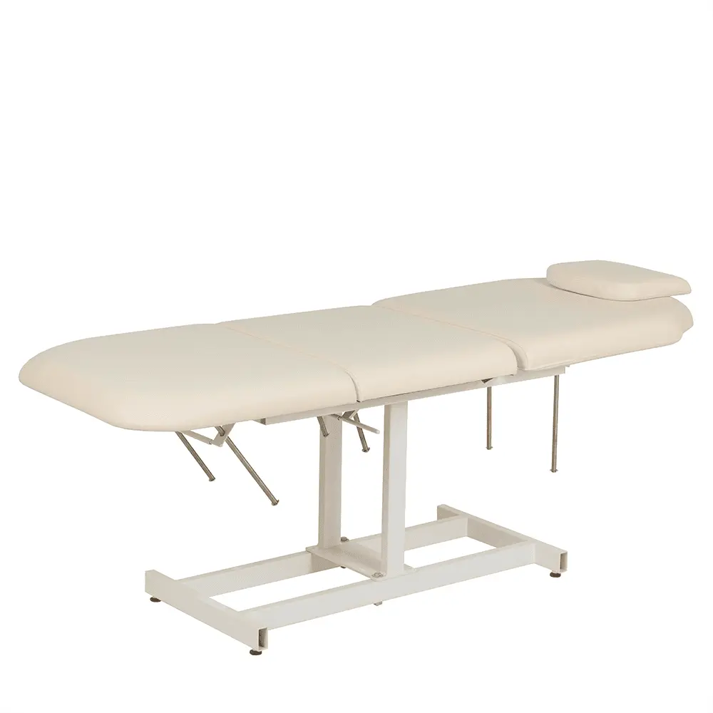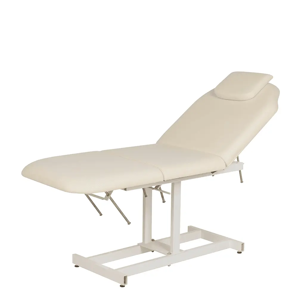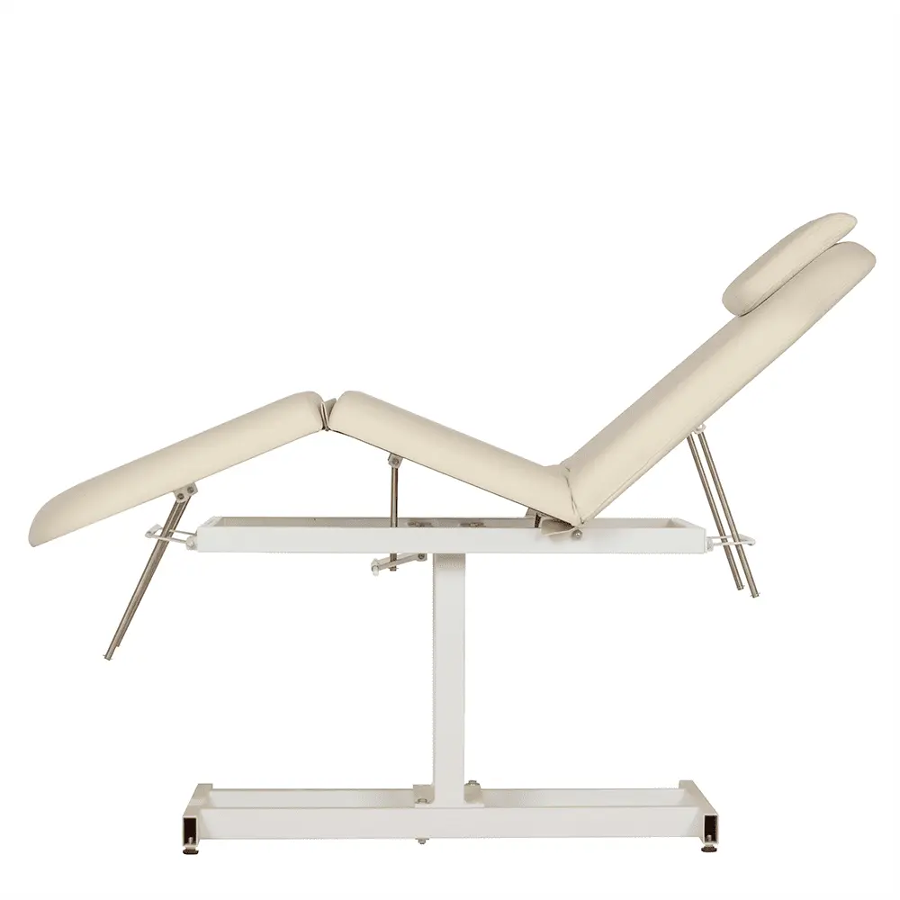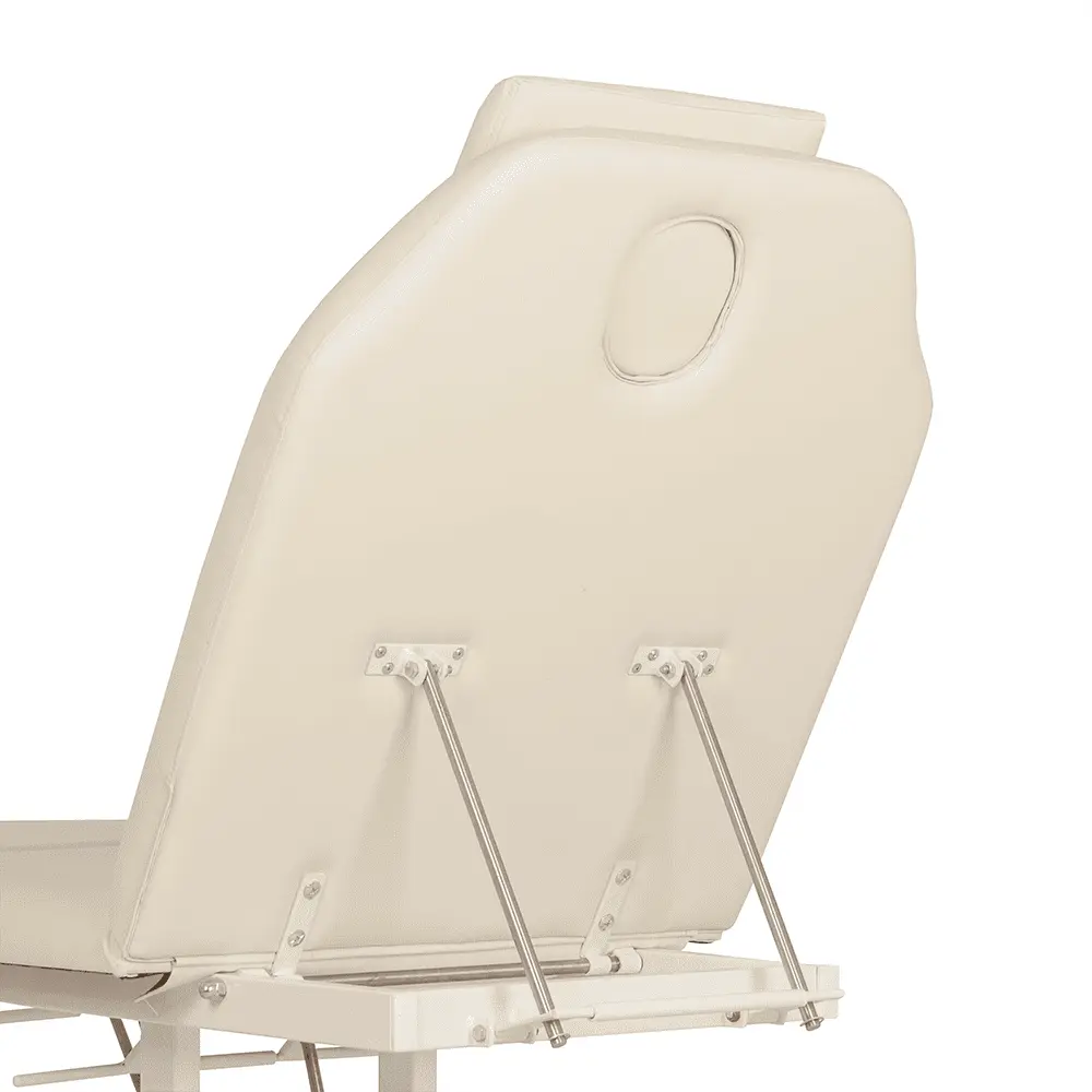 Продуманная конструкция без лишних деталей способна выдерживать регулярные рабочие нагрузки. В зависимости от процедуры, мастер может с легкостью поднять ножной элемент или спинку. Регулировка осуществляется механически.