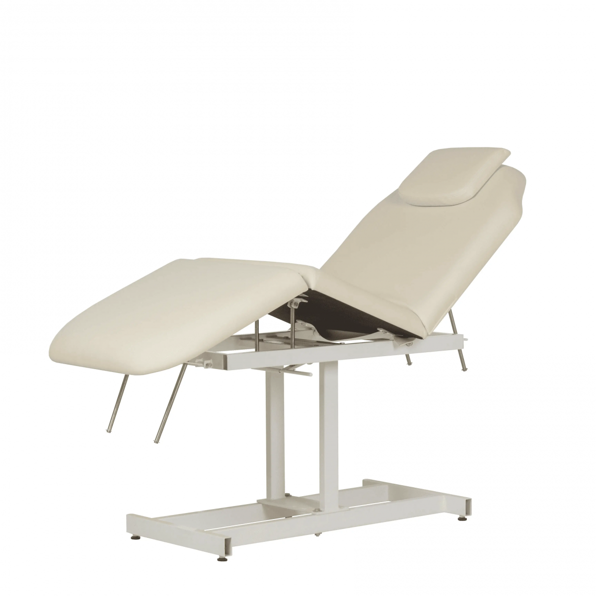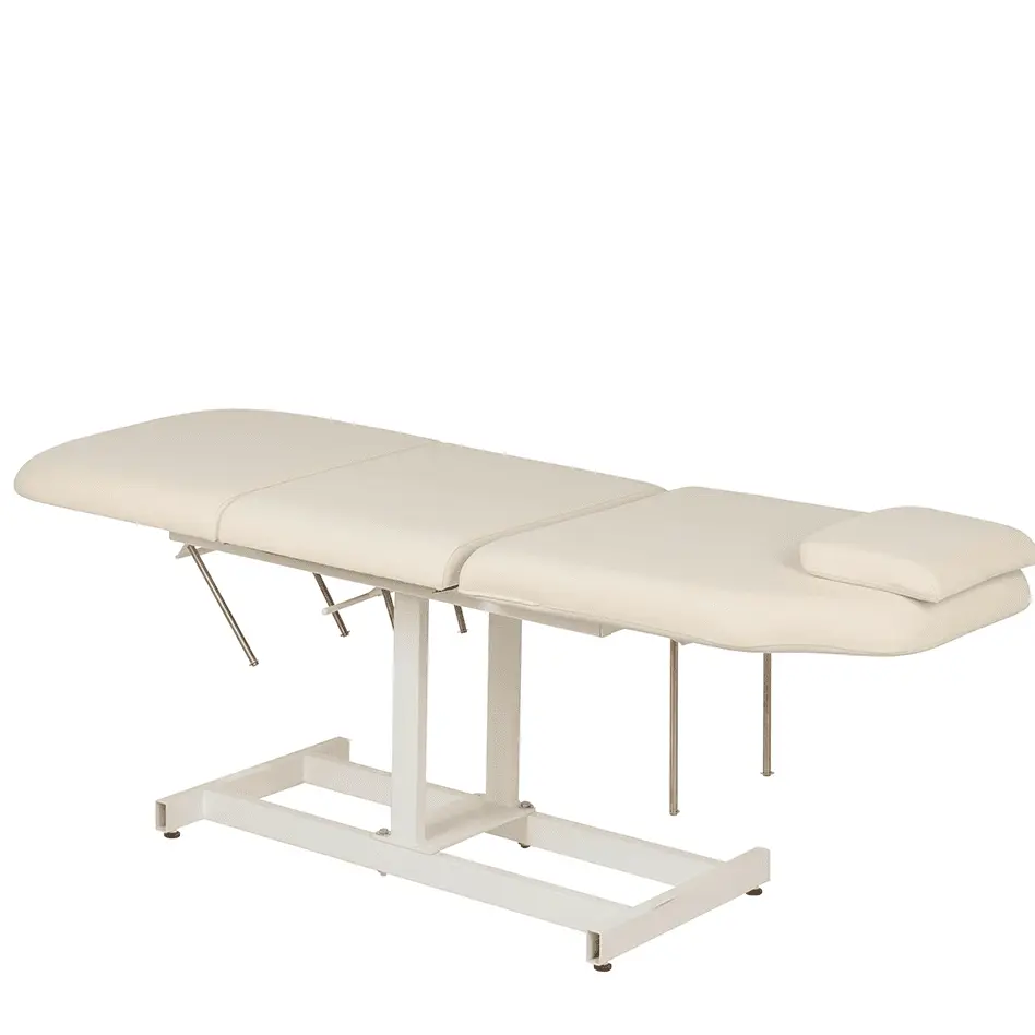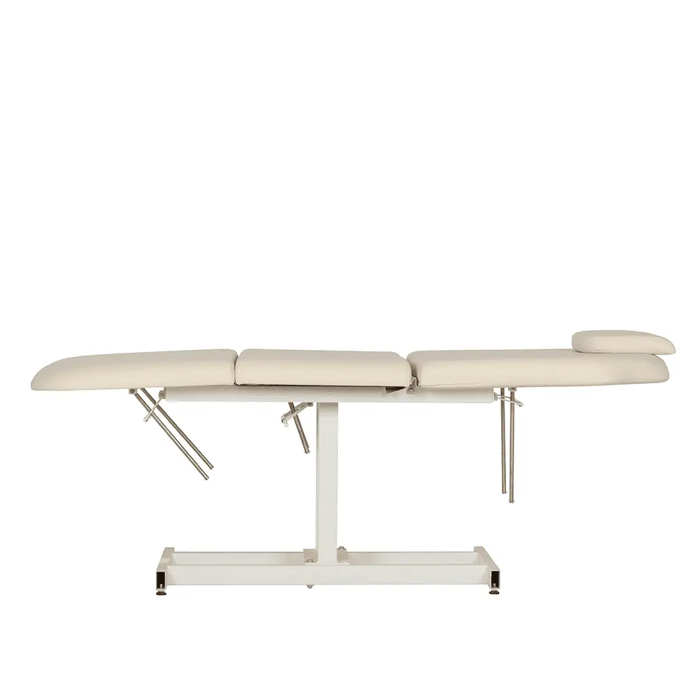 Продуманная конструкция без лишних деталей способна выдерживать регулярные рабочие нагрузки. В зависимости от процедуры, мастер может с легкостью поднять ножной элемент или спинку. Регулировка осуществляется механически.