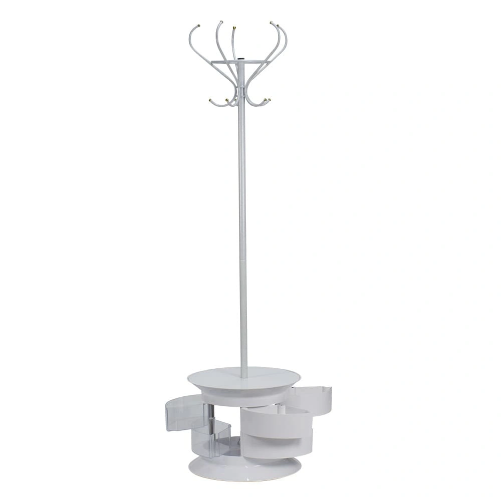 В салоне красоты должно быть оборудовано место, где посетители могут оставить верхнюю одежду. Не всегда помещение позволяет оборудовать просторную гардеробную. Вешалка для одежды GiroCo Ricardo Plus white не займет много места, сохранив опрятный вид вещей клиентов. Нижний ярус – функциональная тумба с шестью ящиками. Оборудование можно перемещать без особых усилий благодаря встроенным колесам.