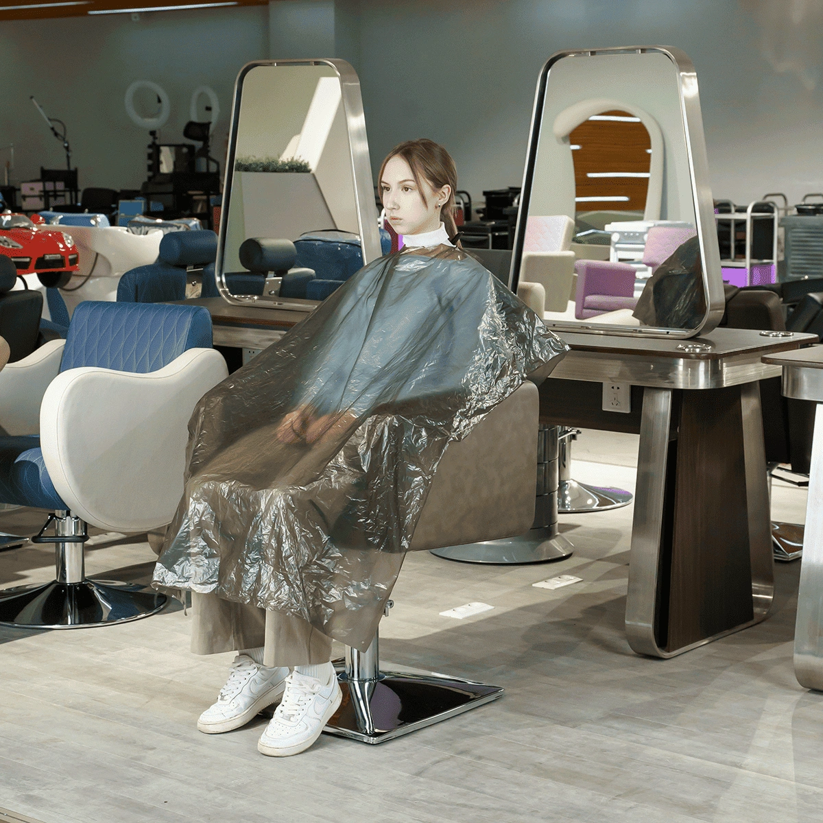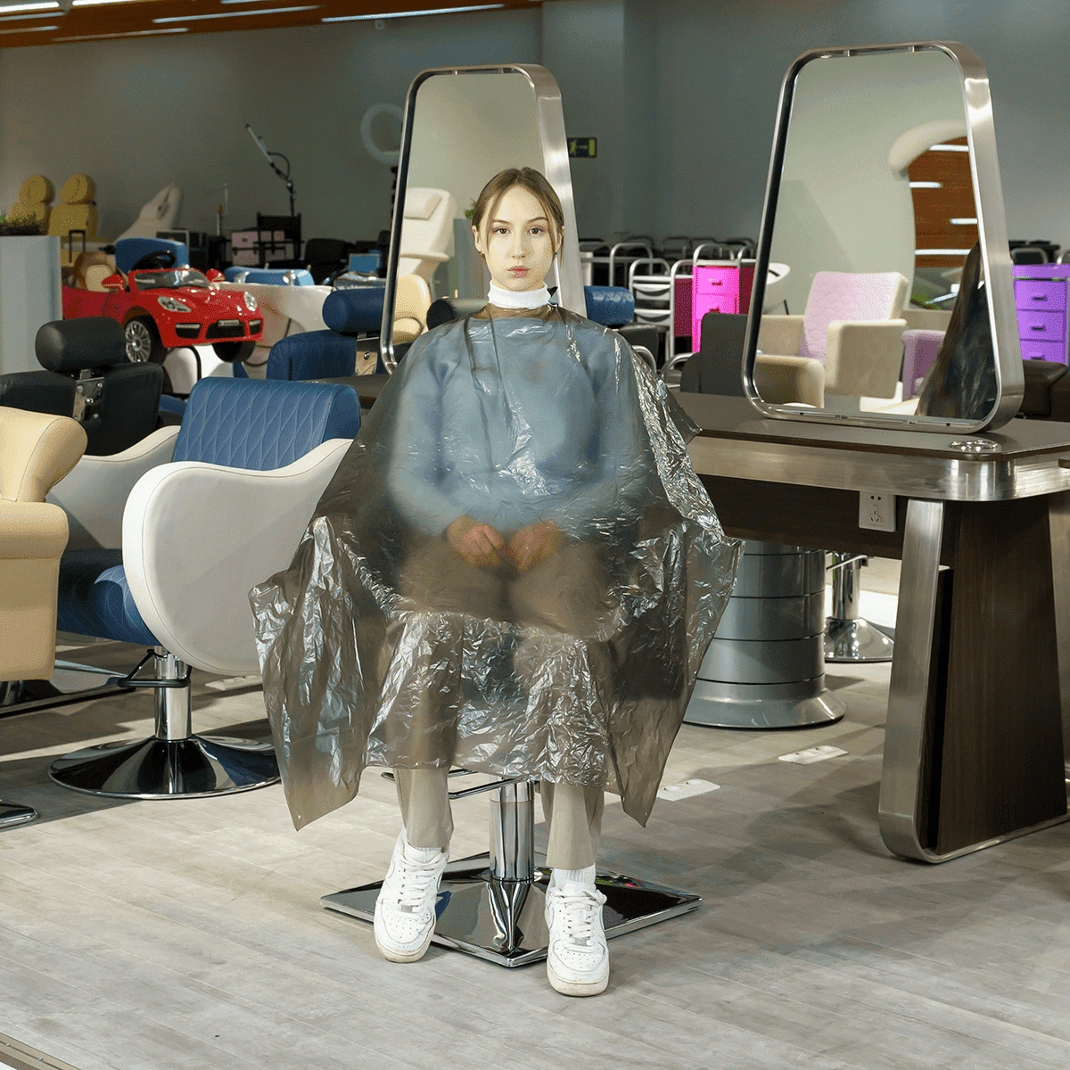 Пеньюар стандарт из полиэтилена повышает комфорт клиентов во время проведения процедуры.