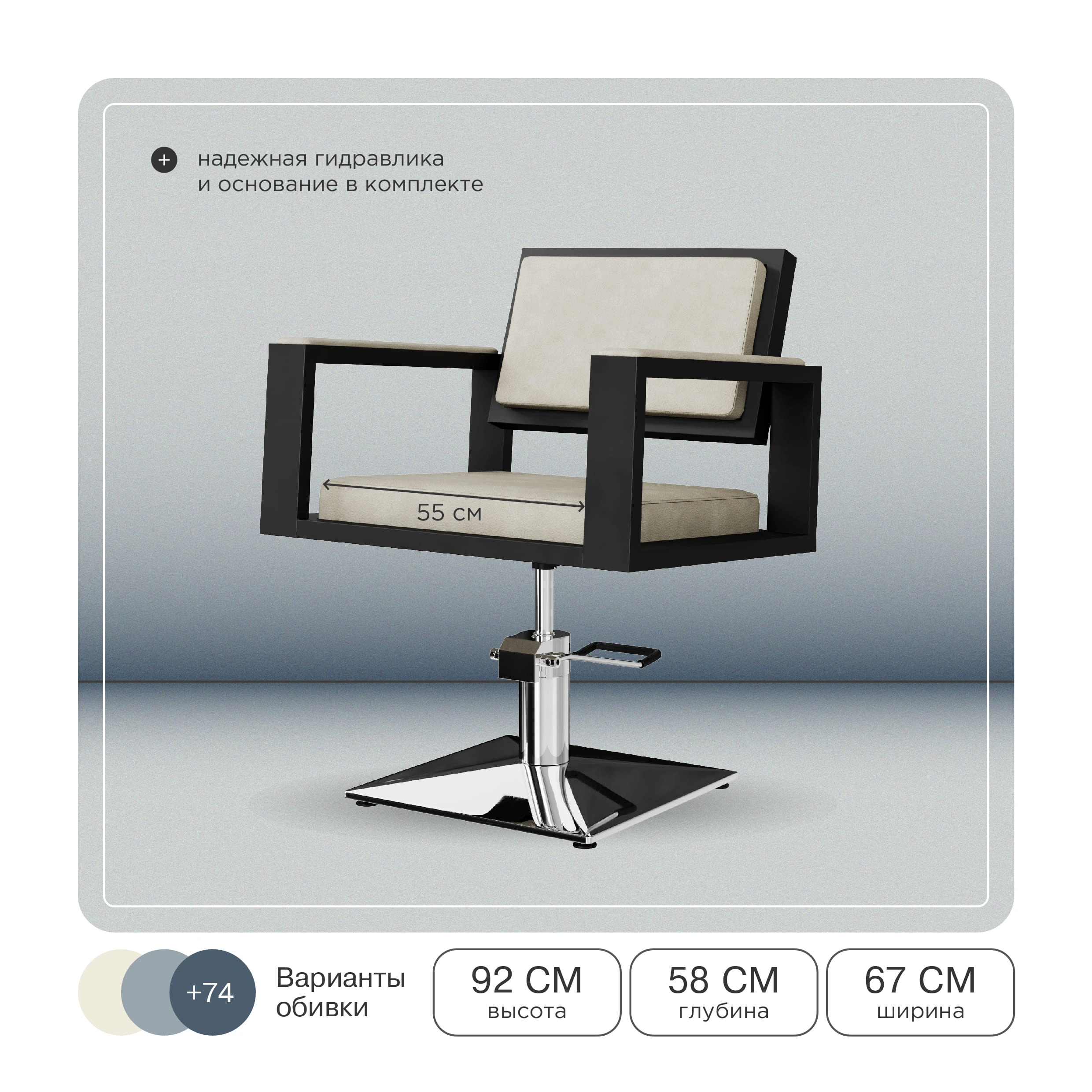 Удобное сиденье с мягкой спинкой в сочетании с подлокотниками обеспечат комфорт каждому клиенту. В качестве наполнителя применён плотный поролон, который не образует вмятин в течение длительного срока эксплуатации. Для обивки использована прочная экокожа, устойчивая к разрывам, растягиванию и протиранию. Уход за поверхностью необычайно прост потому, что материал не впитывает влагу и грязь. Пыль с такой мебели можно удалить сухой текстильной салфеткой, а пятна от косметических продуктов стираются специальными моющими составами для кожи без содержания хлора.