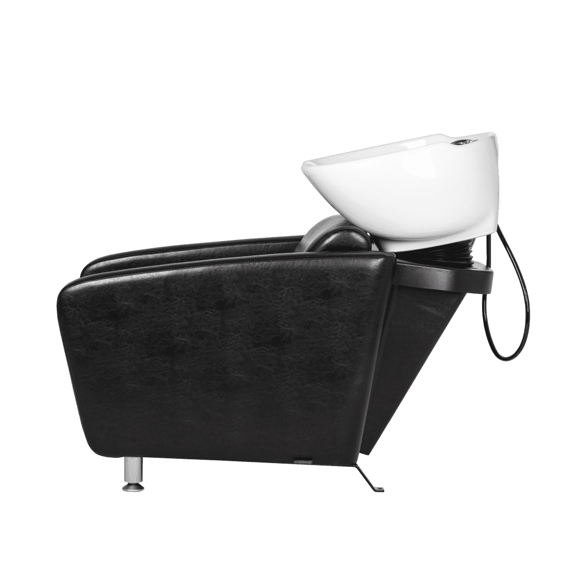 Каркас мойки изготовлен из прочного металла с влагозащитным покрытием черного цвета. Он прикреплен к спинке кресла, из-за чего конструкция не требует крепления к полу. Обивка кресла выполнена из качественной экокожи, устойчивой к воздействию воды и дезинфицирующих средств. Парикмахерская мойка МД-123 без регулировки ножной части от магазина МЭДИСОН поставляется в двух коробках. В комплект к мойке рекомендуем приобрести парикмахерское кресло МД-165 с аналогичным дизайном.