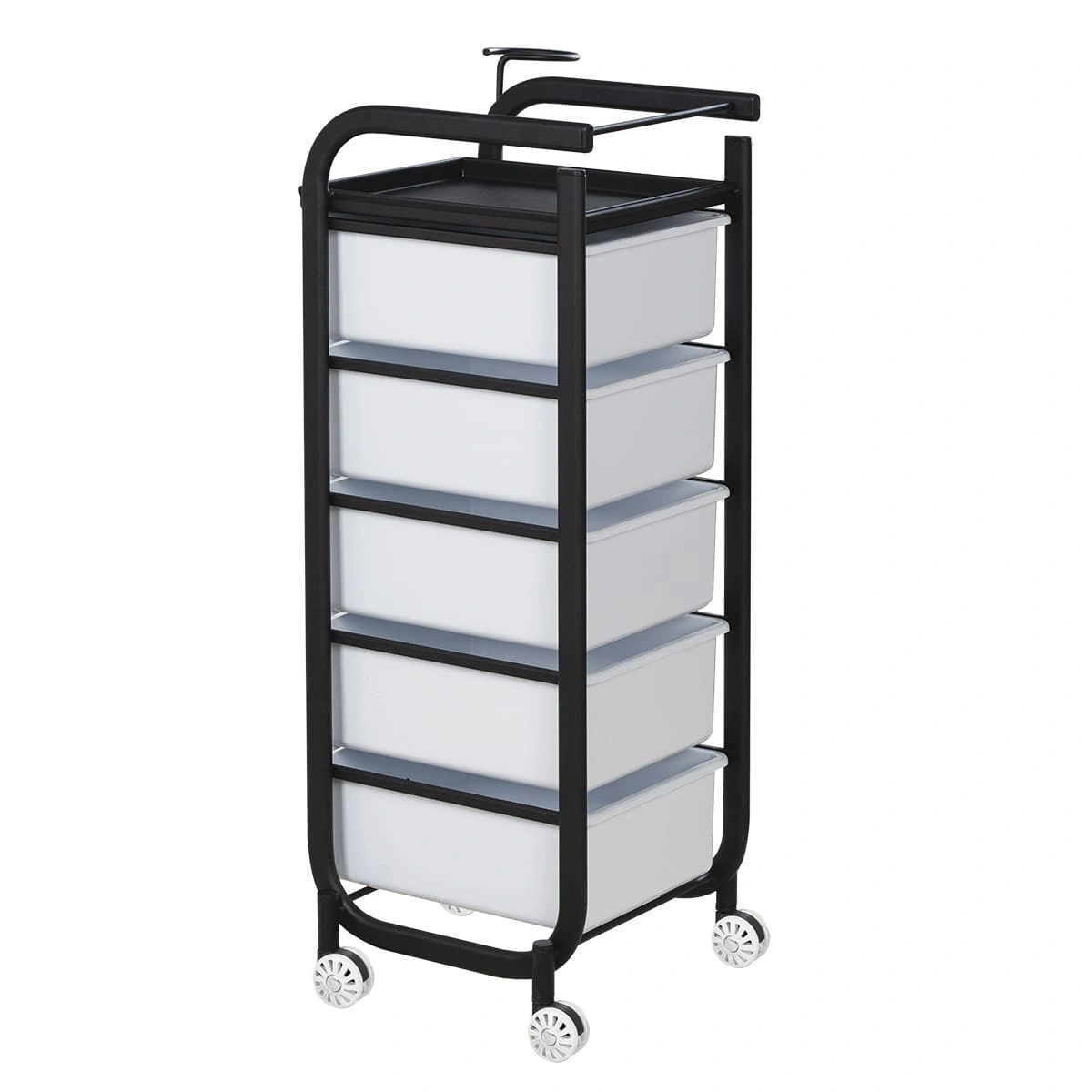 В каталоге нашего магазина Вы можете подобрать и купить парикмахерскую тележку Арт с черным каркасом, с черными или белыми ящиками, с черными или белыми колесами.