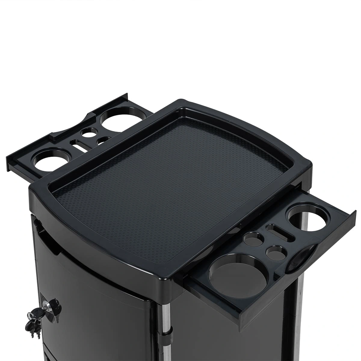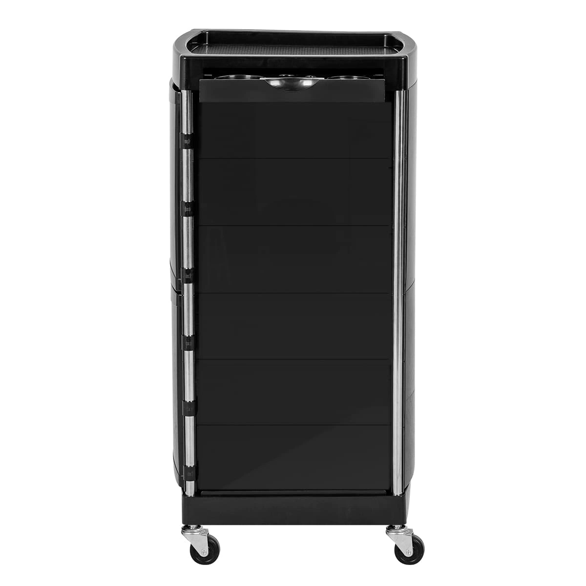 Основание парикмахерской тележки на 4 манёвренных прорезиненных колёсах, благодаря чему мастер сможет легко перемещать ее в рабочей зоне, не прерывая рабочий процесс.