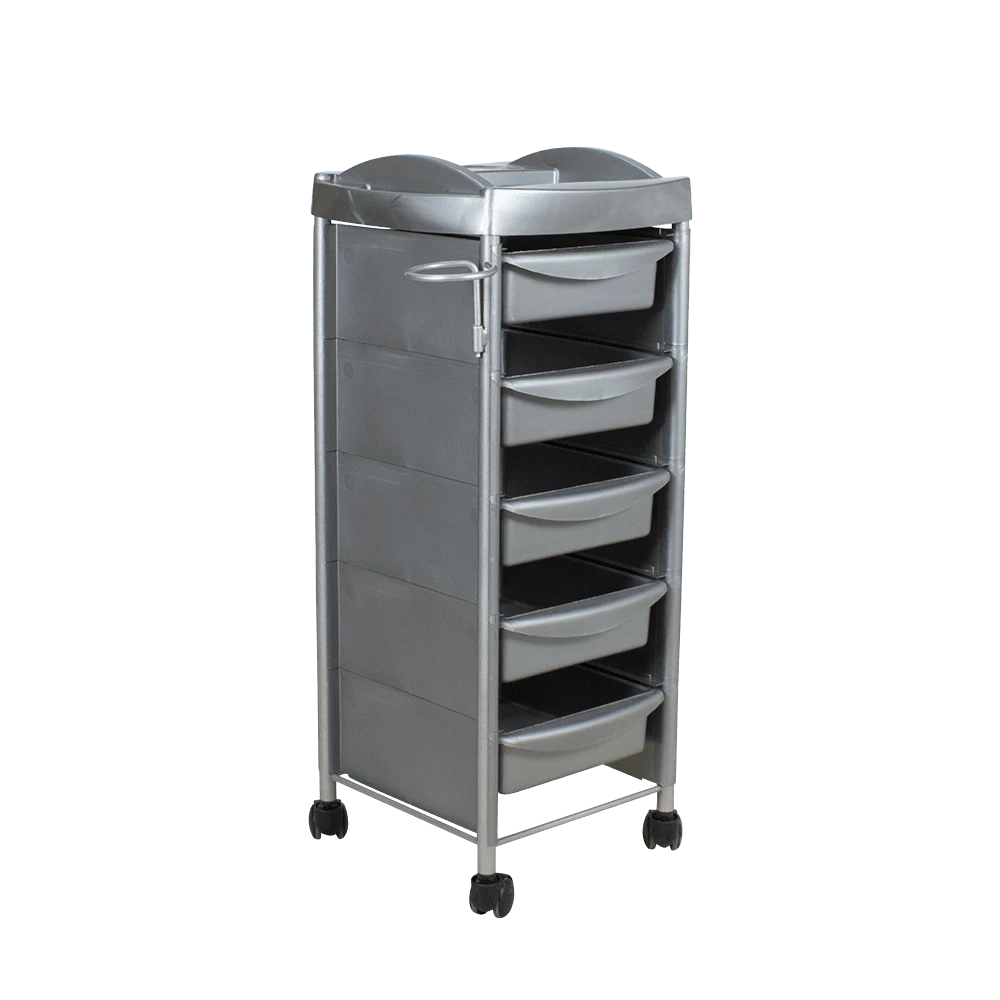Удобная и вместительная тележка парикмахерская М-03 Next черная позволит мастеру организовать рабочее пространство и повысить эффективность работы. Каркас металлический, со специальным влагозащитным покрытием. Боковины состоят из отдельных пластиковых панелей, которые предотвращают выпадение содержимого из ящичков и обеспечивают эргономичность тележки. Верхняя крышка в виде функциональной полочки с отделениями и выдвижные ящики так же изготовлены из ударопрочного пластика в черном цвете. В ящичках специалист сможет разместить всё необходимое для работы: инструменты, оборудование, косметические средства, приспособления и прочее.