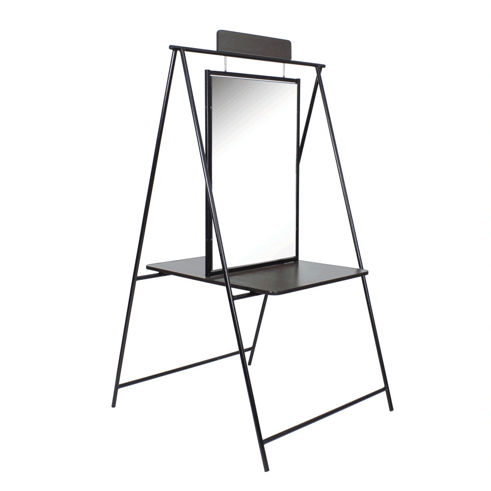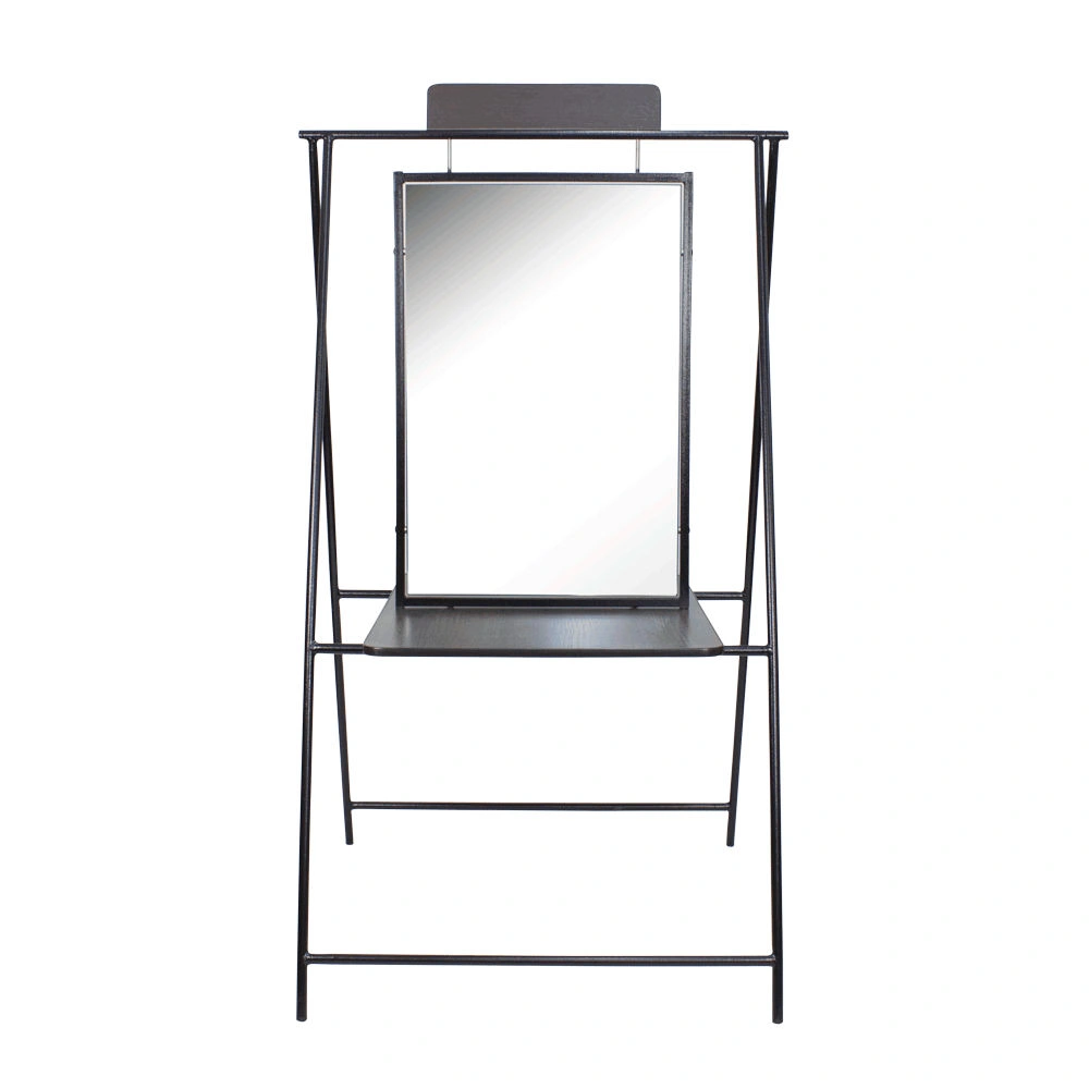 Прочный металлический каркас на ножках гарантирует надежность и устойчивость зеркала. При необходимости его можно легко переставить или сложить. Такое зеркало является отличным вариантом для выездной работы. На полке из ЛДСП можно разместить косметические средства или аксессуары. В наличии цвета «белый дуб», «венге», «ваниль» и «серебро». Также парикмахерское зеркало Артем (двустороннее, складное) магазин нашей компании предлагает на заказ в других цветовых решениях.