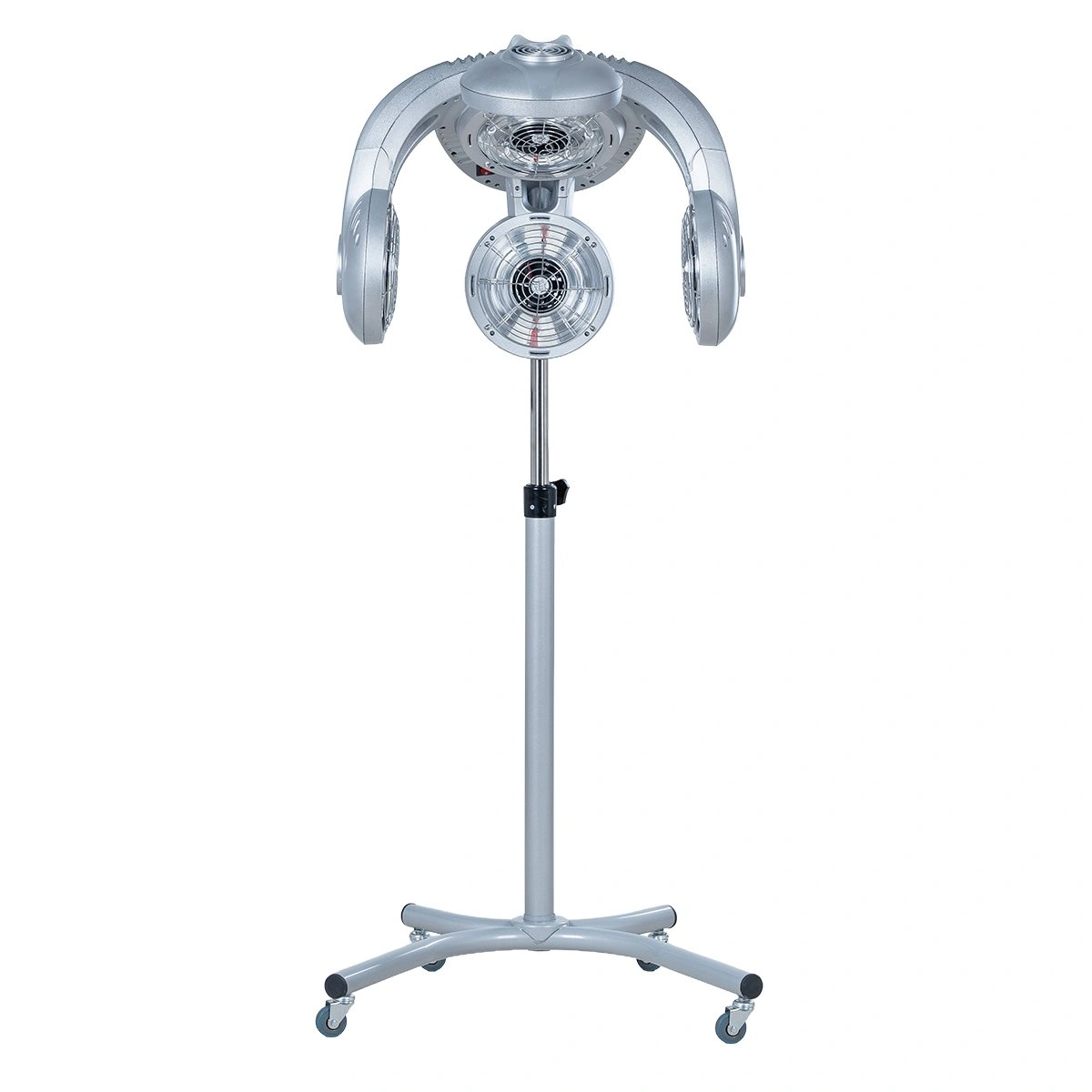 Работать с прибором очень легко, так как он оснащен удобной панелью управления c возможностью настройки программ вручную. В данной модели регулируемая высота, основание с маневренными колесами, пять инфракрасных ламп, вращающихся вокруг оси.