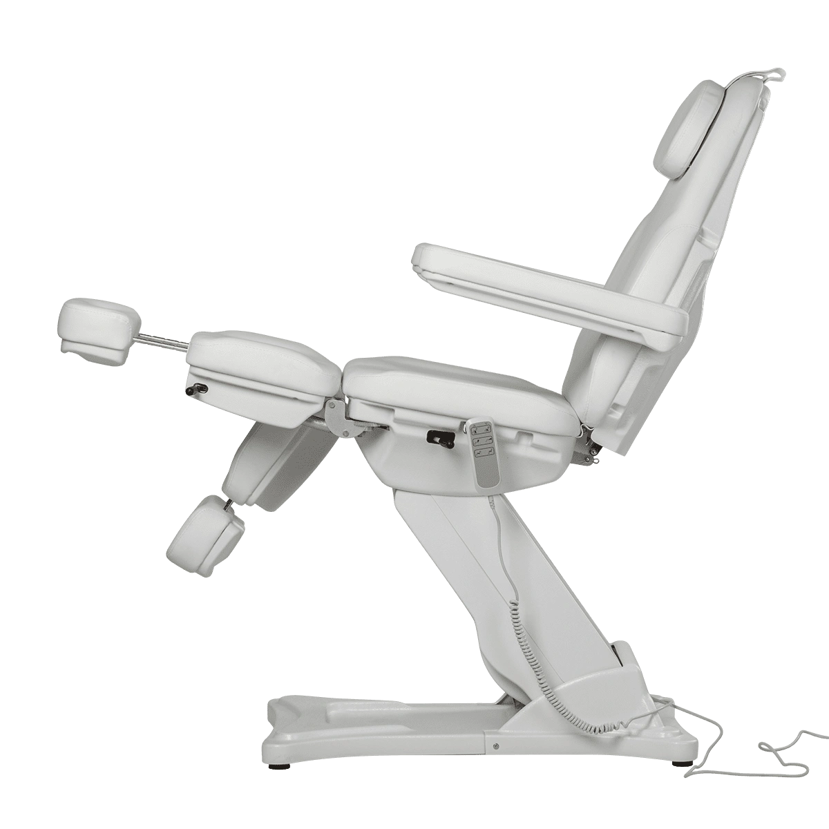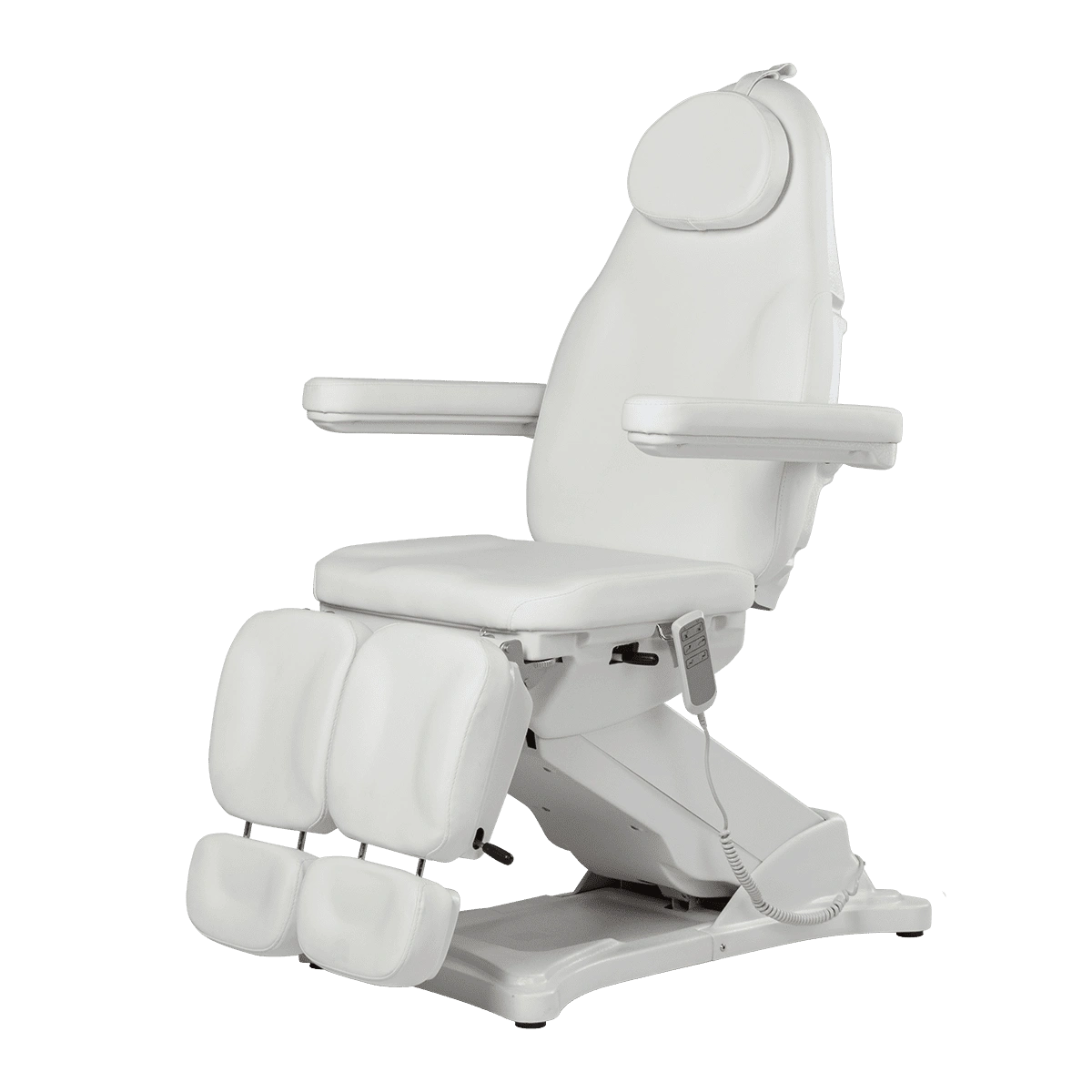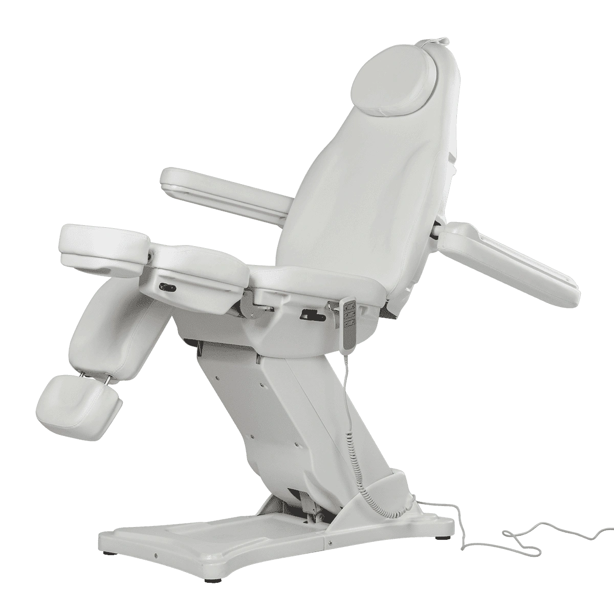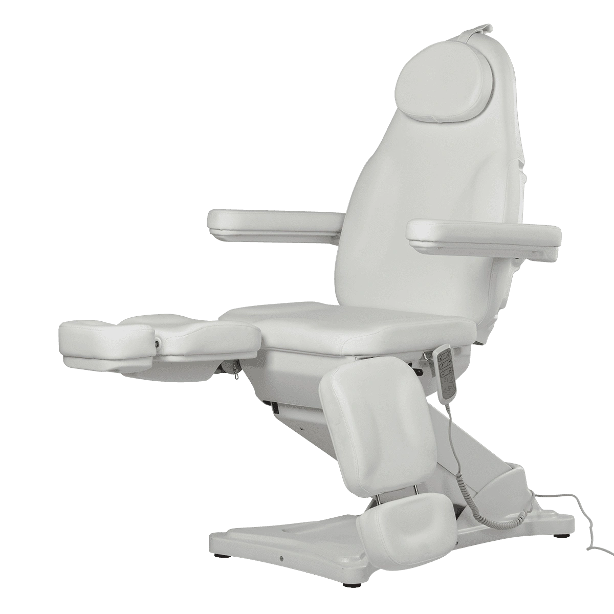 Комплектация: каркас, основание на подпятниках, сиденье, спинка, подголовник с вырезом для лица и съемной подушкой, мягкие элементы под ноги с выдвижными подпятниками, съемные подлокотники, электропривод (3 мотора) с пультом управления.