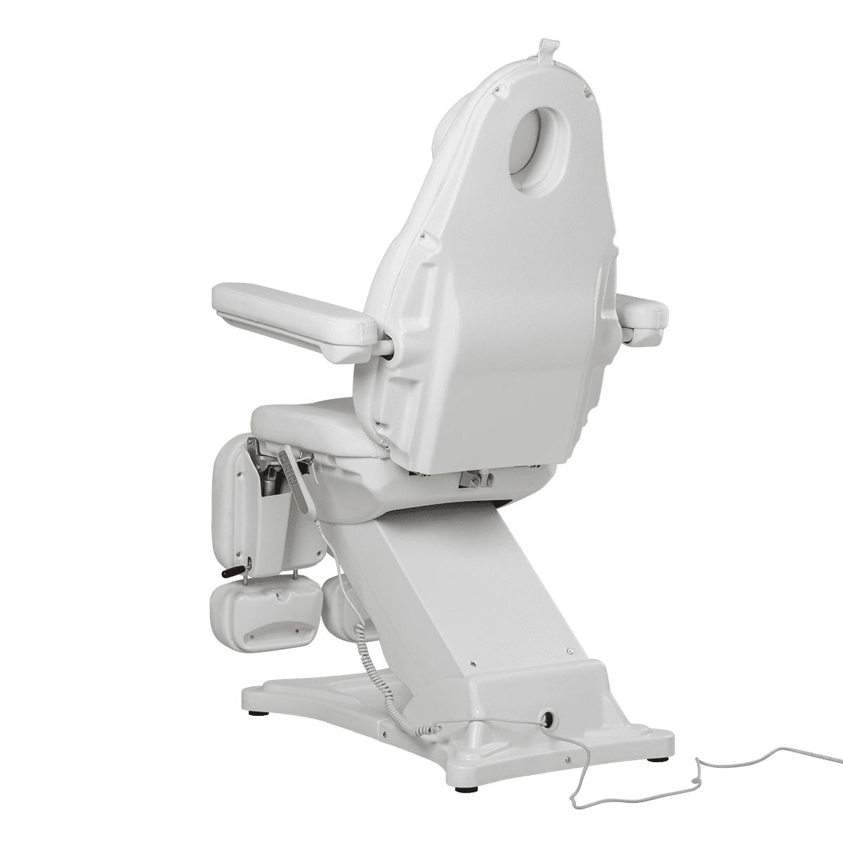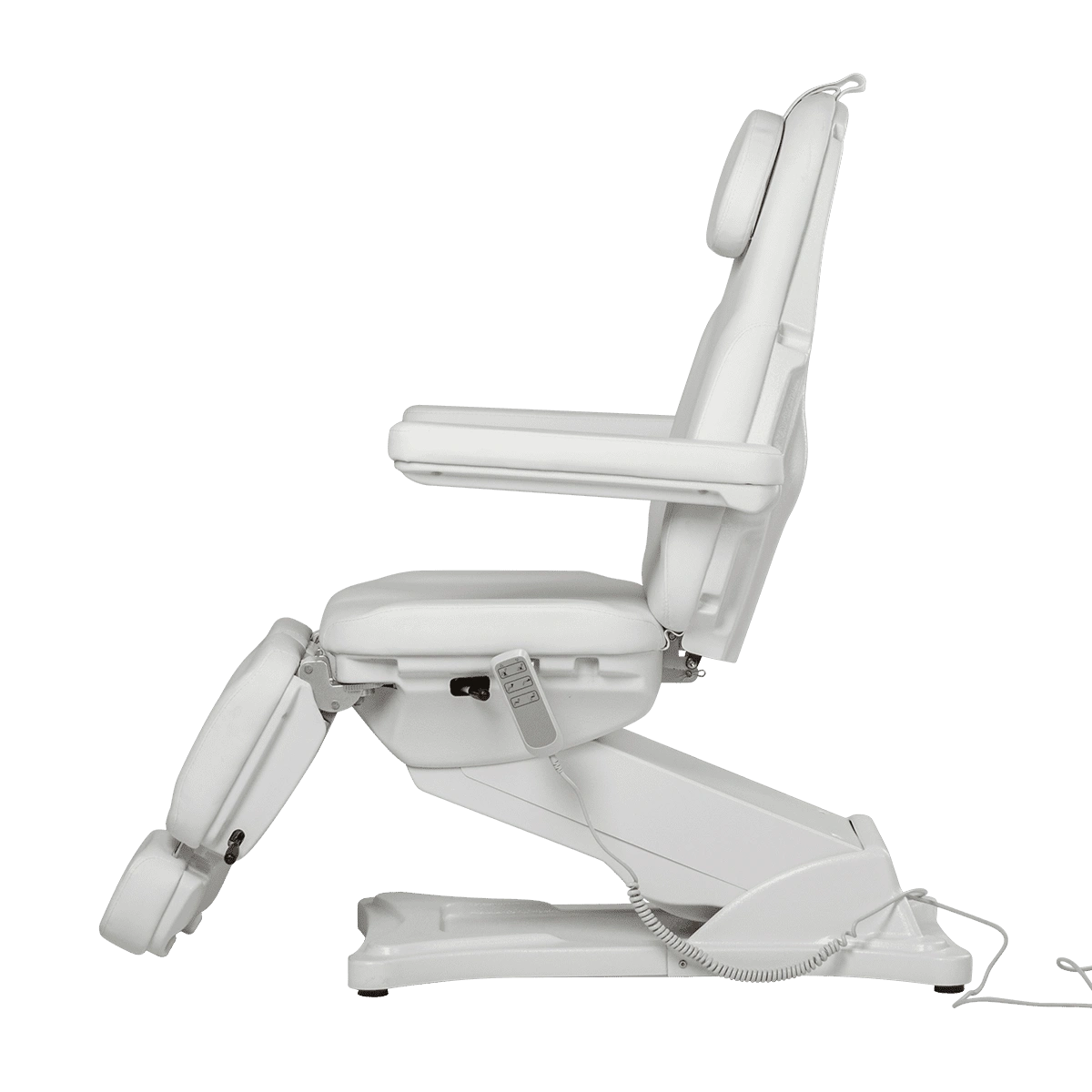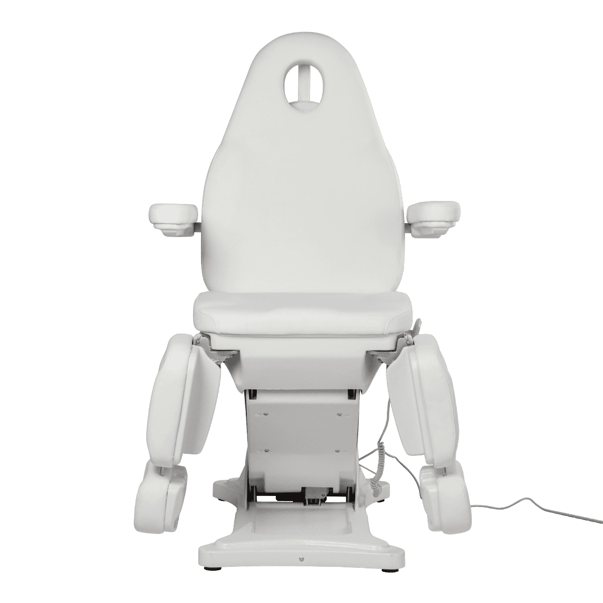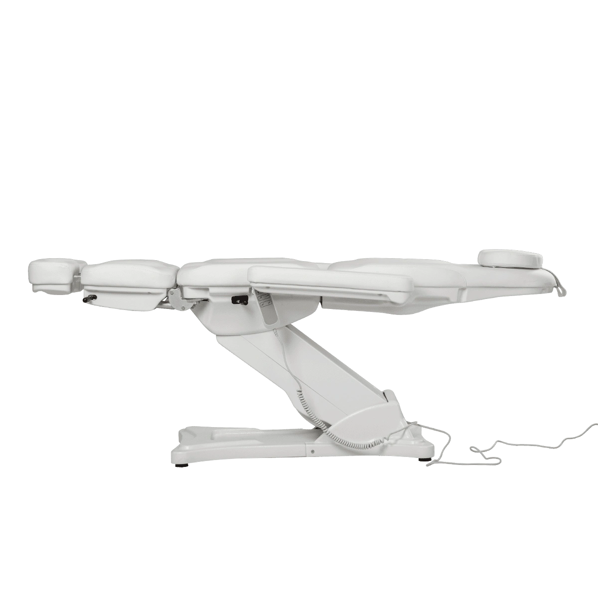 Комплектация: каркас, основание на подпятниках, сиденье, спинка, подголовник с вырезом для лица и съемной подушкой, мягкие элементы под ноги с выдвижными подпятниками, съемные подлокотники, электропривод (3 мотора) с пультом управления.