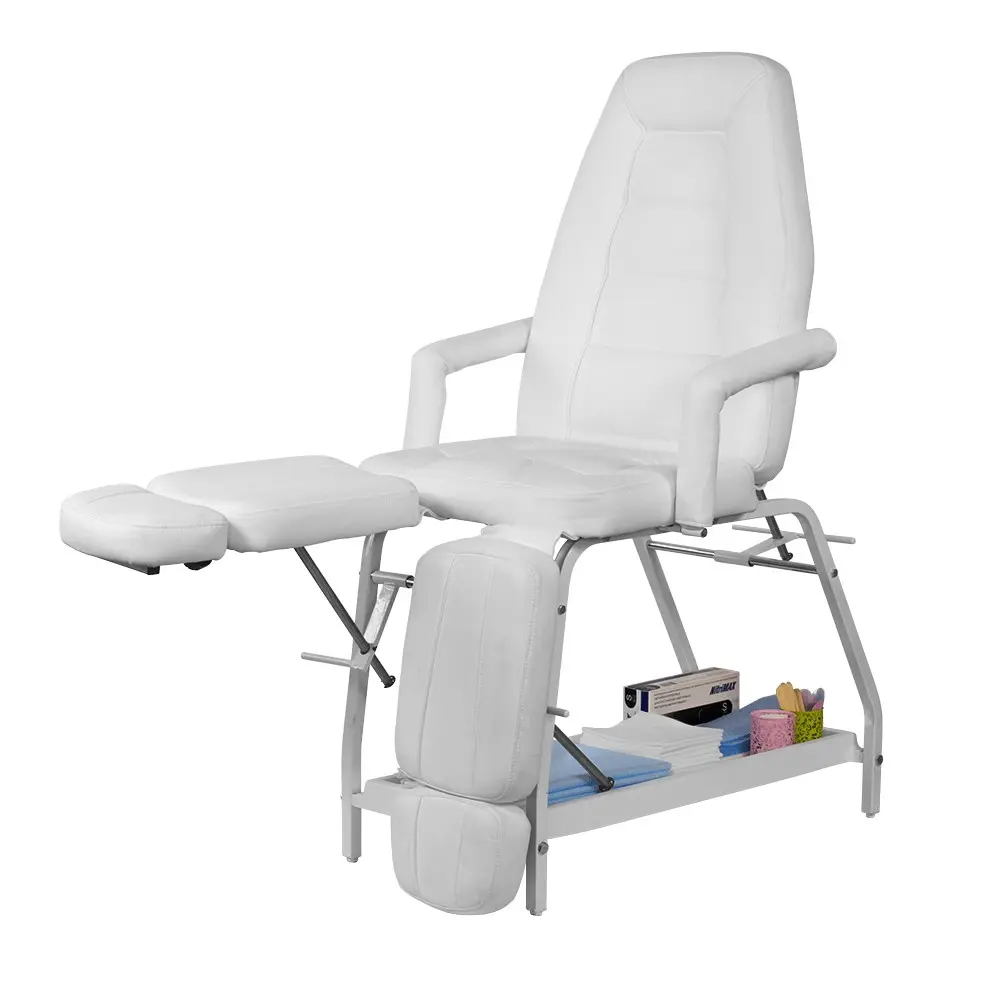 Педикюрное кресло СП Люкс относится к серии доступного профессионального оборудования по выгодной цене. Оно имеет стильный дизайн и обеспечивает необходимый уровень комфорта клиентам и мастерам в процессе выполнения педикюра и других косметологических процедур. Оборудование укомплектовано надежным устойчивым каркасом из металла, покрытого белой порошковой краской для защиты от коррозии. Для обивки мягких элементов наша компания использует экологически чистый и долговечный материал – экокожу. Она легко поддается чистке и не требует специального ухода.