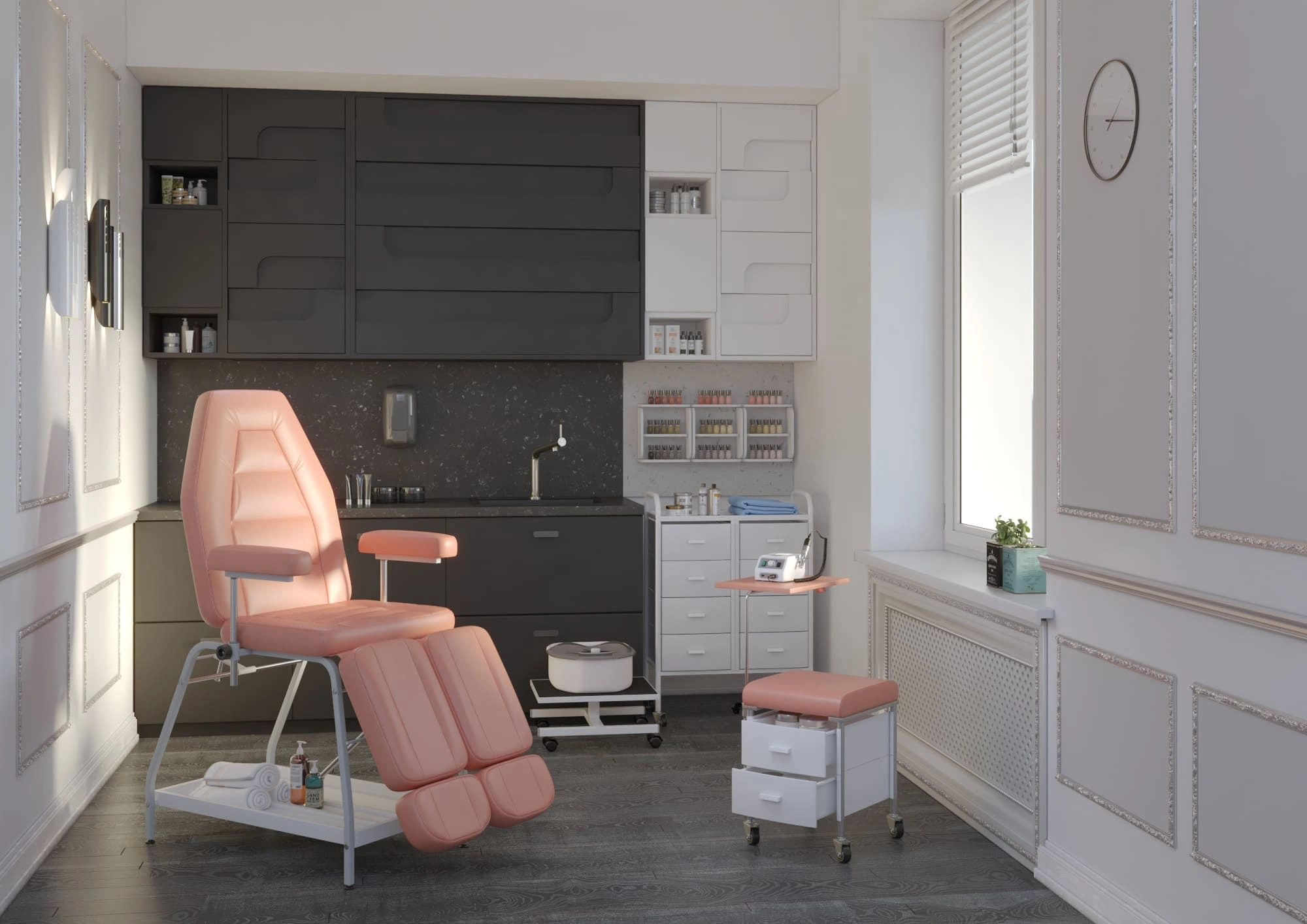 Если в вашем кабинете не очень много места, то педикюрно-маникюрная стойка Рокси станет отличным решением.