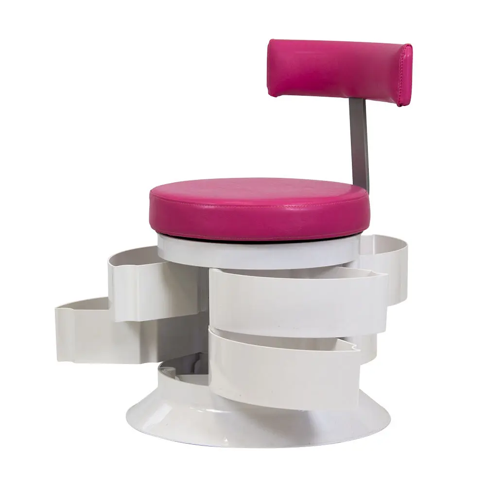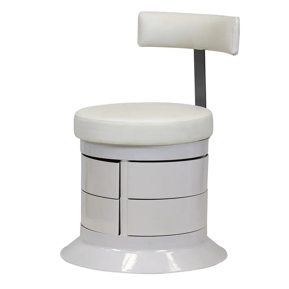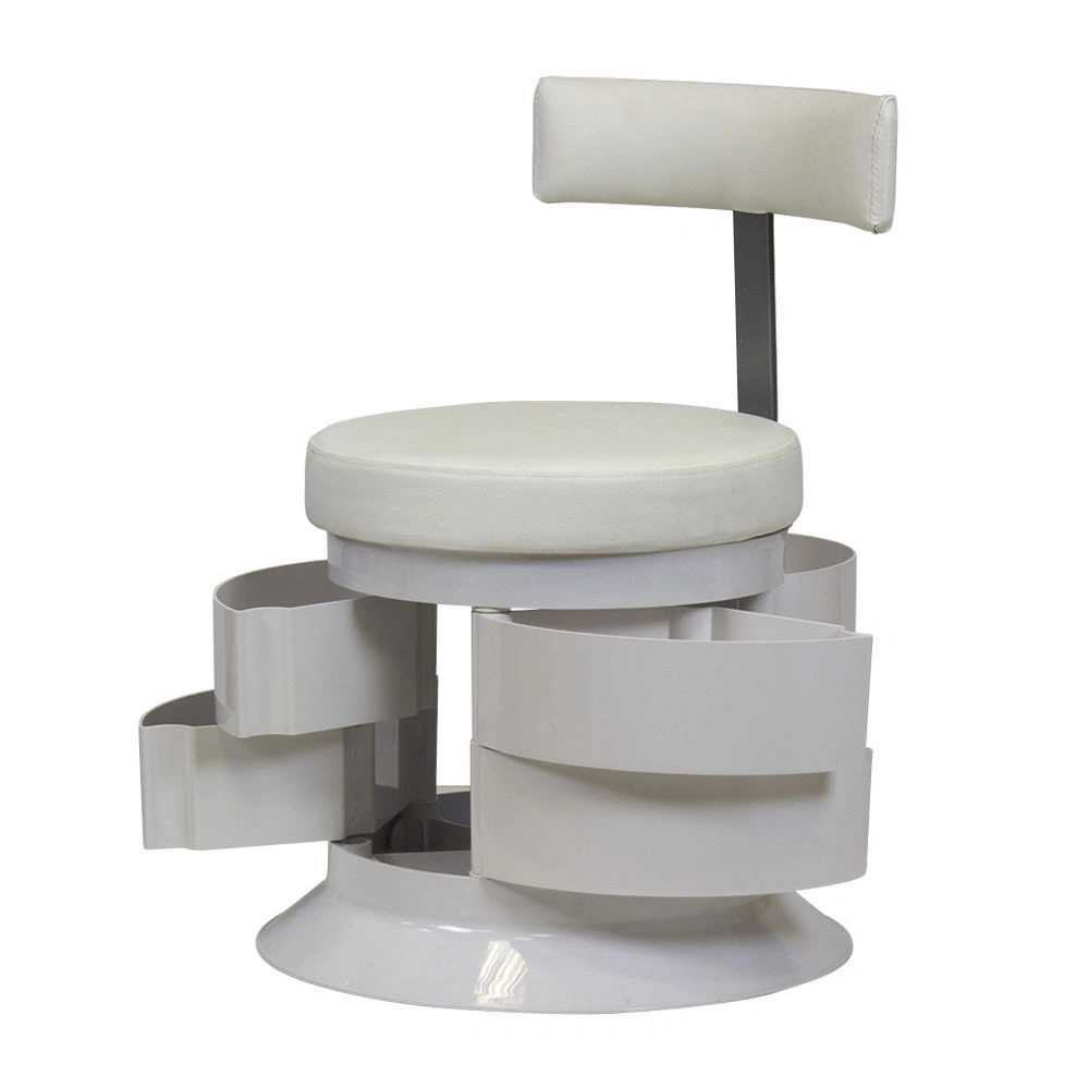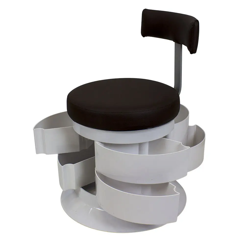 За комфорт пуфика отвечает мягкое сидение. Эргономичная спинка – дополнительное удобство для осанки мастера. В оборудовании предусмотрен практичный элемент – шесть вместительных ящичков. Специалисту не придется тратить время на поиски инструмента по салону. Бесшумно и быстро перемещаться во время рабочего процесса позволяют шесть маневренных колес.