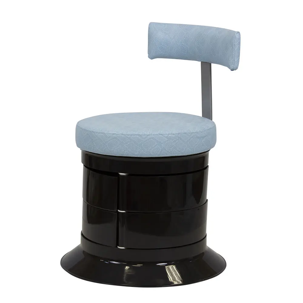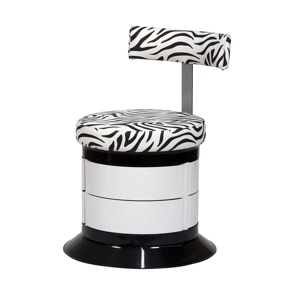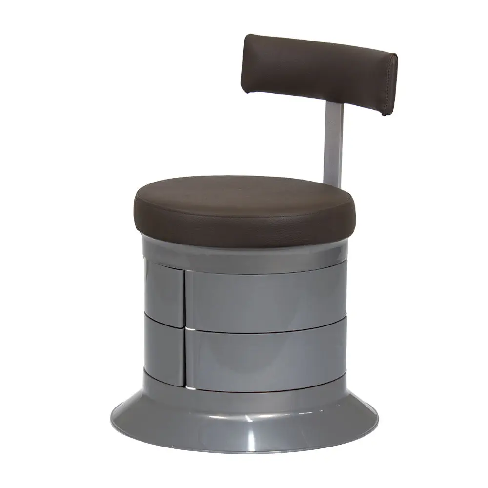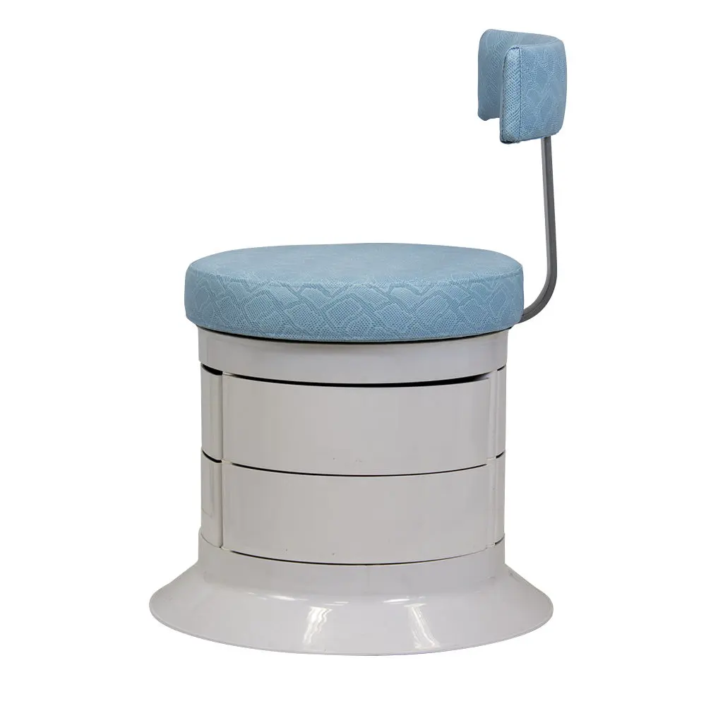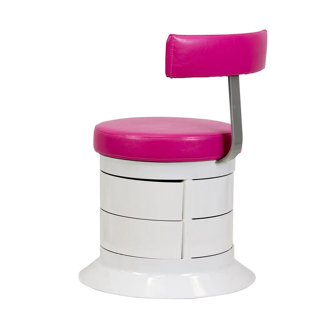 За комфорт пуфика отвечает мягкое сидение. Эргономичная спинка – дополнительное удобство для осанки мастера. В оборудовании предусмотрен практичный элемент – шесть вместительных ящичков. Специалисту не придется тратить время на поиски инструмента по салону. Бесшумно и быстро перемещаться во время рабочего процесса позволяют шесть маневренных колес.